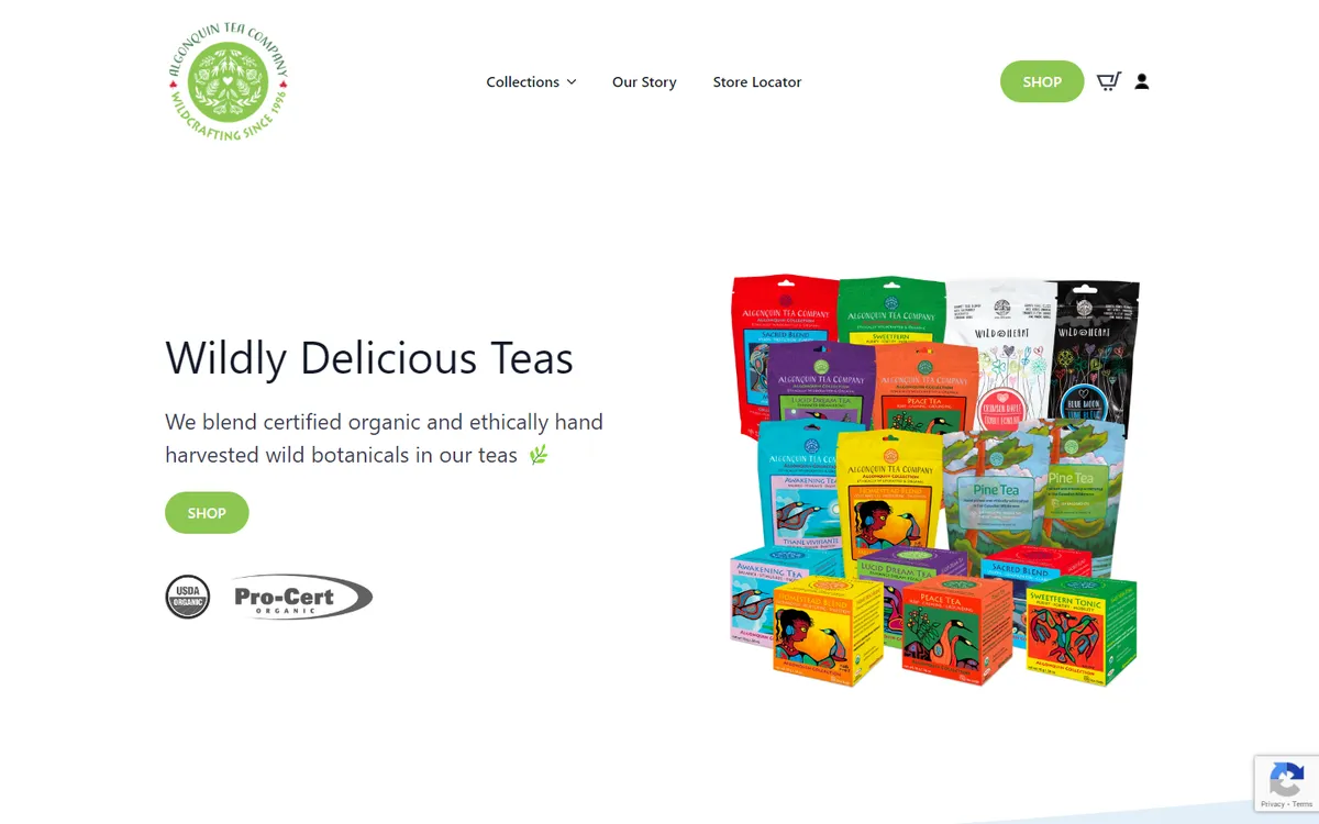 Algonquin Tea Company is an Indigenous-owned Canadian tea brand that harvests wild plants and herbs from the forests and fields of Algonquin territory in Ontario. The company approaches wildcrafting — the practice of harvesting plants from their natural habitat — with deep respect for the land and traditional ecological knowledge passed down through generations. Plants are gathered sustainably, "grazing like deer" to take only what is needed and leave the ecosystem thriving for future harvests.