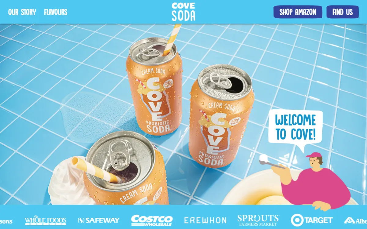 2023 Cove shook things up with new soda flavours and innovations that gained major media buzz and quickly became fan favourites across the country. 2024 With Canadian fans hooked on Soda, Cove went all-in on the US — hitting shelves in powerhouse retailers like Costco and Erewhon.