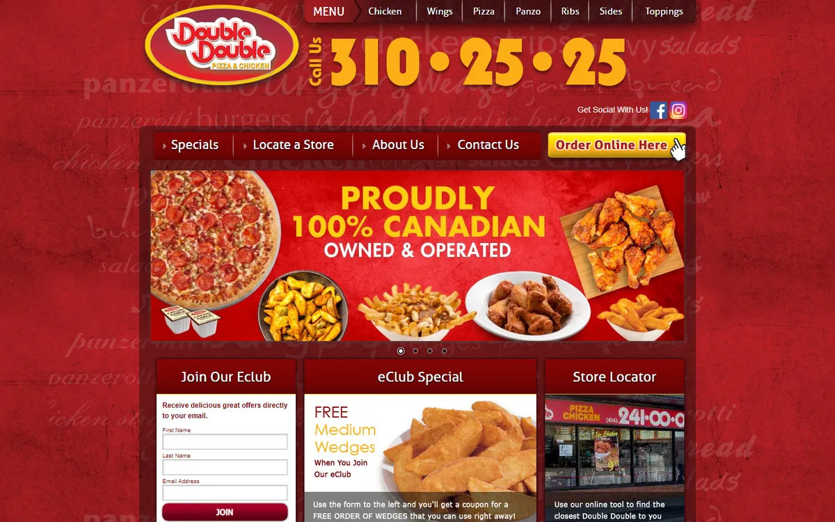 Priding ourselves on fresh ingredients and the best chicken available, we create nutritious meals for lunch or dinner! With over 35 locations serving the best pizza in Toronto, Waterloo, Hamilton, London, Oshawa and other cities in Ontario, there's a Double Double Pizza & Chicken near you!