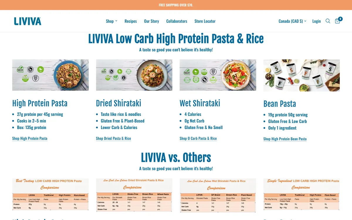 LIVIVA Foods is a Canadian label offering low-carb, high-protein pasta alternatives made from clean, plant-located ingredients like organic soybeans, black beans, and shirataki.