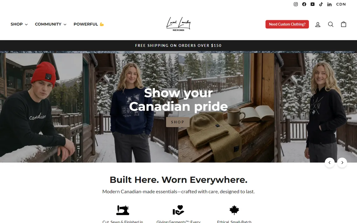 From that moment, Local Laundry became more than a clothing company. We make clothing that builds community. Our mission is to build a stronger Canada, one garment at a time by supporting local manufacturing, giving back to causes that matter, and celebrating the people that make this country what it is.