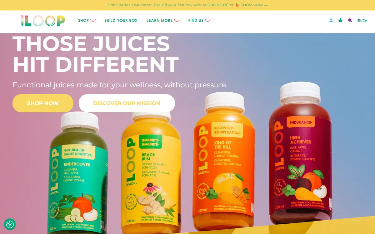 Loop Mission is a Montreal-based circular food company founded in 2016 by Julie Poitras-Saulnier and David Côté. The company's mission is to fight food waste by rescuing imperfect, surplus, and unsold fruits and vegetables from farms and distributors, then transforming them into cold-pressed juices, smoothies, soups, alcoholic beverages, and other products. The founding insight was simple: perfectly nutritious produce gets thrown away every day because it doesn't meet the cosmetic standards of grocery stores — bruised apples, oddly shaped carrots, overripe bananas.