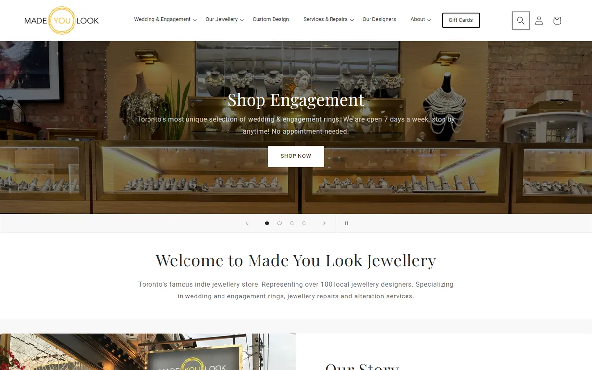 Our Story Nestled in Toronto’s vibrant Parkdale neighborhood, Made You Look has become a celebrated destination for those who value originality and local talent. We represent over 100 Canadian jewelry designers, offering anything from distinctive engagement and wedding rings to personalized pieces that tell your story.