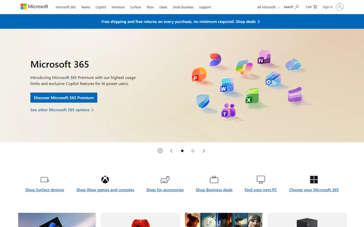 Microsoft sells Surface devices, Xbox consoles, Windows software, and Microsoft 365 subscriptions for productivity and gaming.