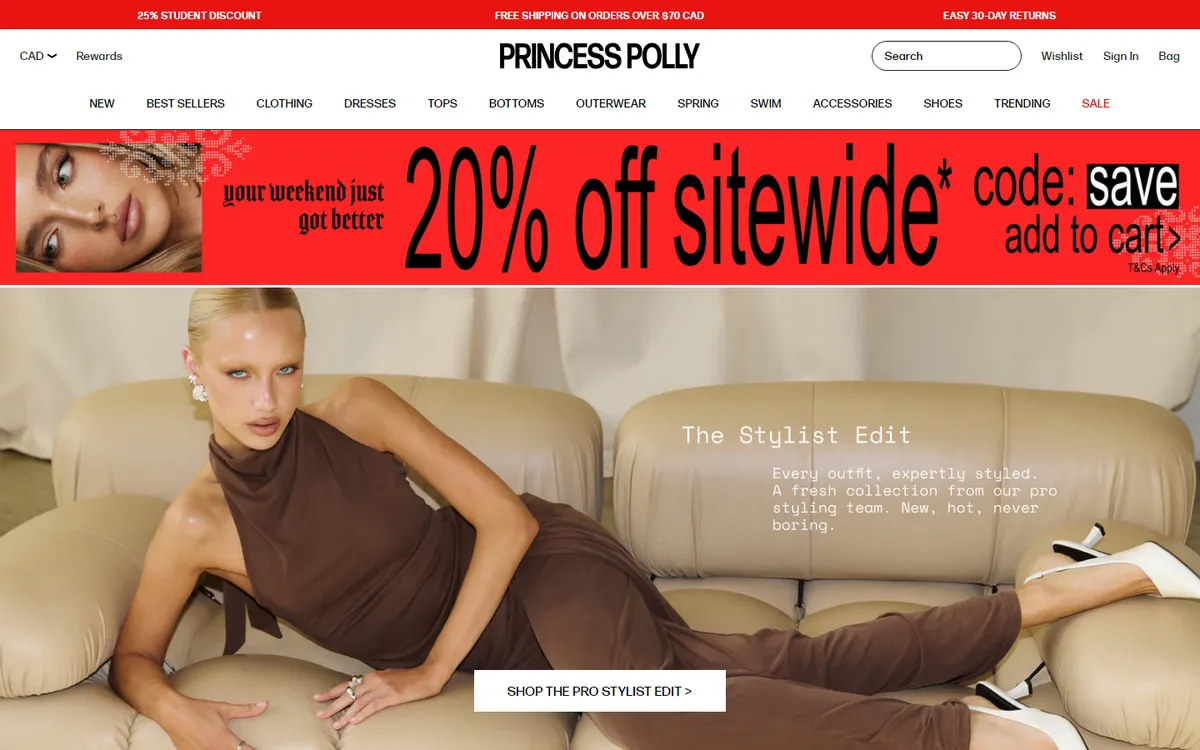 Princess Polly is an Australian-born trendy fashion brand popular with Gen Z. Ships from US to Canada with duties included at checkout.