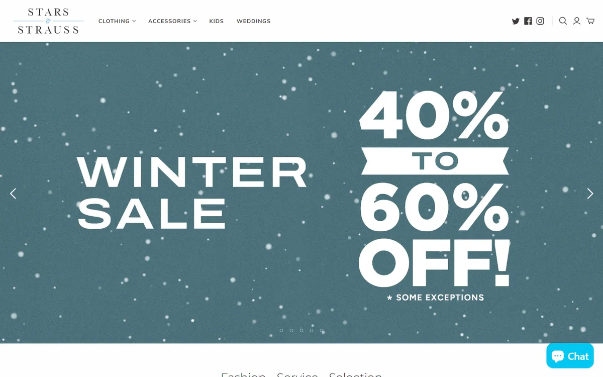 Beyond suits and tuxedos, Stars & Strauss carries a full menswear wardrobe: dress shirts, sport shirts, trousers, overcoats, shoes, ties, pocket squares, belts, cuff links, socks, scarves, and suspenders. The tuxedo rental program serves the wedding and prom markets, offering groomsmen packages and formal wear without the commitment of purchasing. The online store extends the brand's reach beyond its physical locations, making it possible for customers across Canada to shop the catalogue.