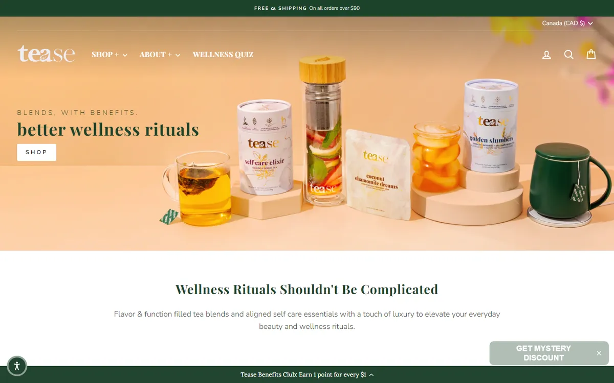 Tease is a Canadian, women-owned brand that’s all about helping you feel your best—through every hustle, high, and hard moment. It was founded by someone who knows burnout firsthand: a former luxury hospitality pro who swapped 6 cups of coffee a day for functional teas that actually helped her sleep, focus, and stay well.