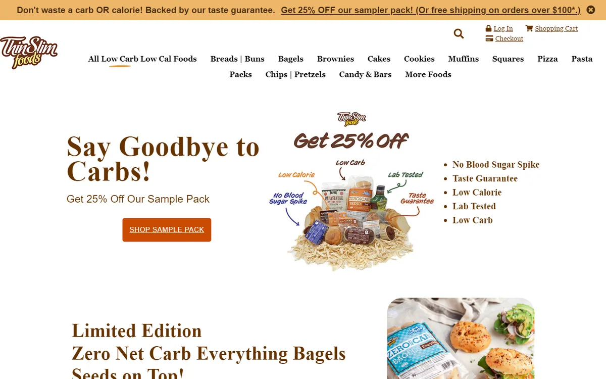 ThinSlim Foods is a specialty food company that produces low-carb, low-calorie alternatives to bread, bagels, pasta, brownies, cookies, and other foods that people following ketogenic, diabetic, or low-carb diets typically have to give up. The brand's flagship product is its zero net carb bread — a loaf that looks, toasts, and sandwiches like regular bread but contains virtually no digestible carbohydrates, making it one of the most popular low-carb bread options in North America.