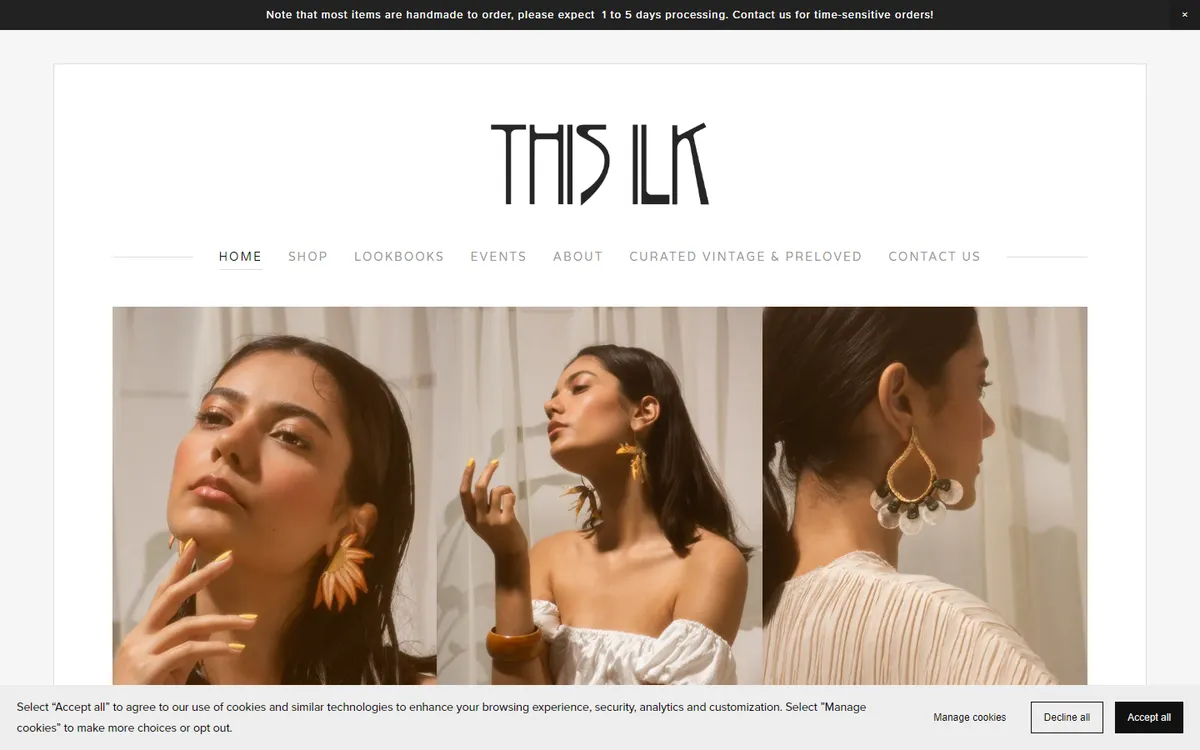 This Ilk is a Montreal-based jewellery brand founded by designer Tamara Bavdek, who creates bold, feminine statement pieces using vintage lace as her primary material. Each piece starts with carefully sourced antique and vintage lace — some pieces dating back a century or more — which Bavdek transforms into dramatic earrings, necklaces, and accessories through a process that stiffens and preserves the delicate textile while maintaining its intricate patterns and organic beauty.