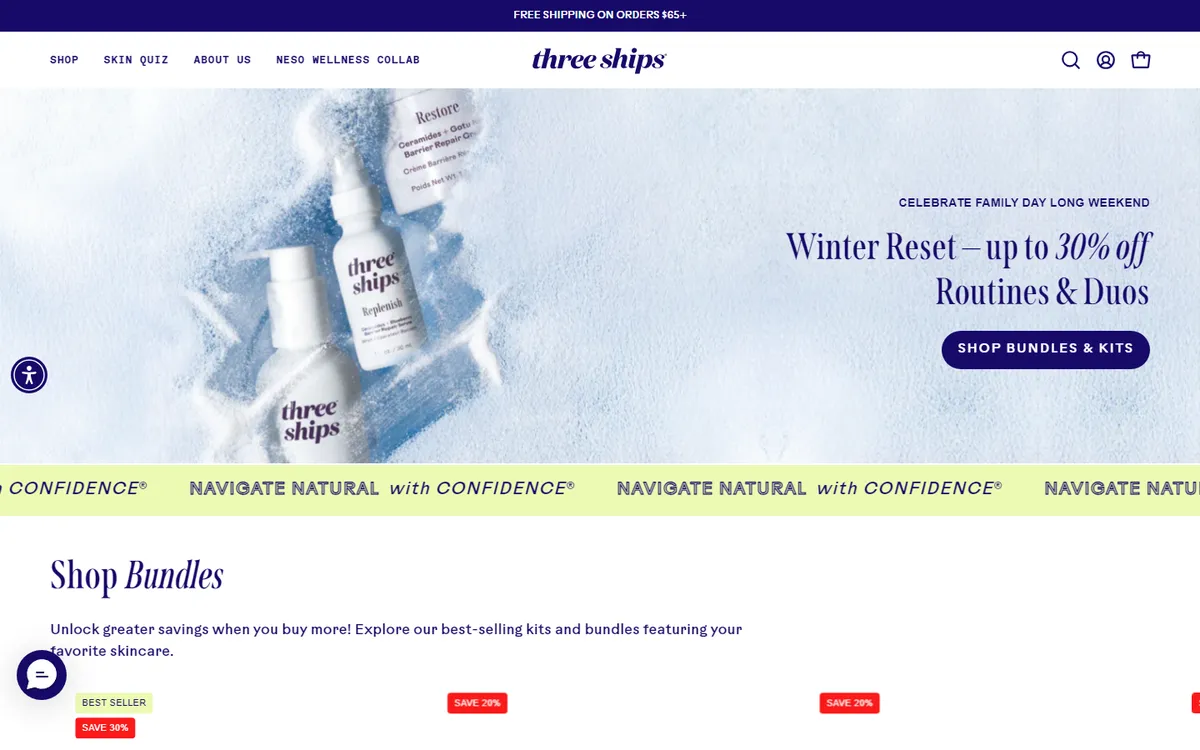 Three Ships grew quickly from a direct-to-consumer operation into a brand stocked at major retailers. The company's products are now available at Sephora Canada, Indigo, and hundreds of independent retailers. Key products include the Jelly Drops Hyaluronic Acid Serum, the SkinHero Bio-Retinol Serum (using bakuchiol as a plant-based retinol alternative), and the Purify Aloe Gel Cleanser. Price points typically range from $22 to $45 CAD, positioning Three Ships in the accessible-luxury segment of clean skincare.