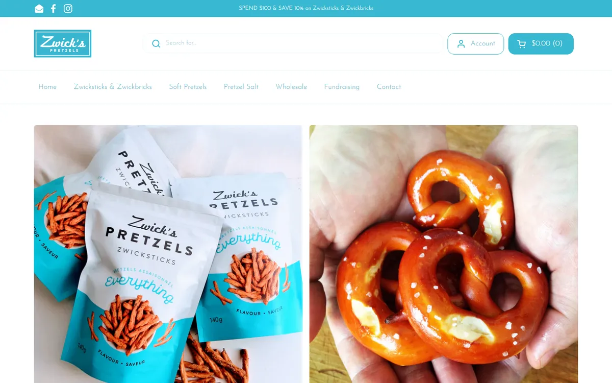 Zwicks Pretzels is a Canadian snack brand that makes hand-twisted, small-batch pretzels using traditional baking methods. The company takes an artisanal approach to a snack that is typically mass-produced, starting with quality flour and real butter rather than the hydrogenated oils and preservatives found in most commercial pretzel brands. The pretzels are baked, not fried, and seasoned with creative flavour combinations that go beyond the standard salted pretzel.
